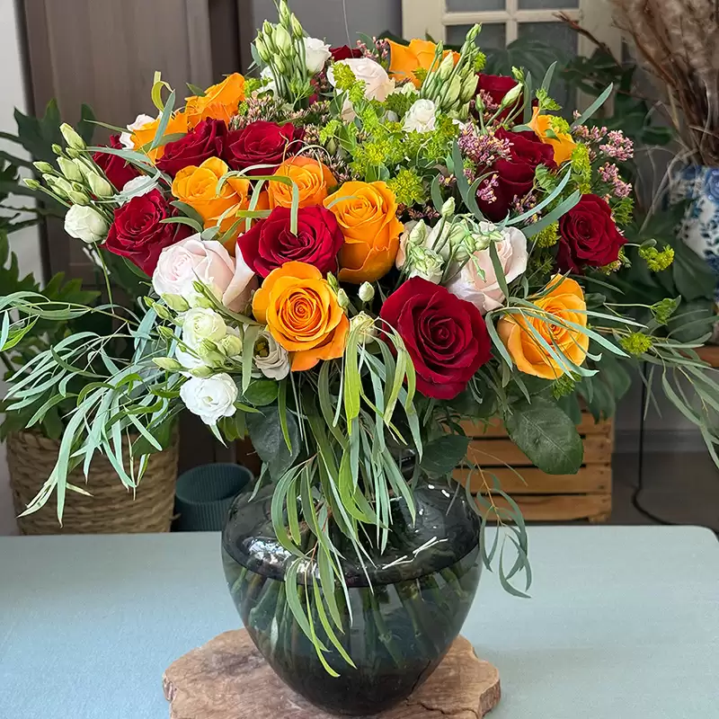 Этот букет идеально подходит для дней рождения, юбилеев, в знак благодарности или просто для радости. Отличный выбор для женщин всех возрастов, которые ценят классическую элегантность с современным акцентом.
